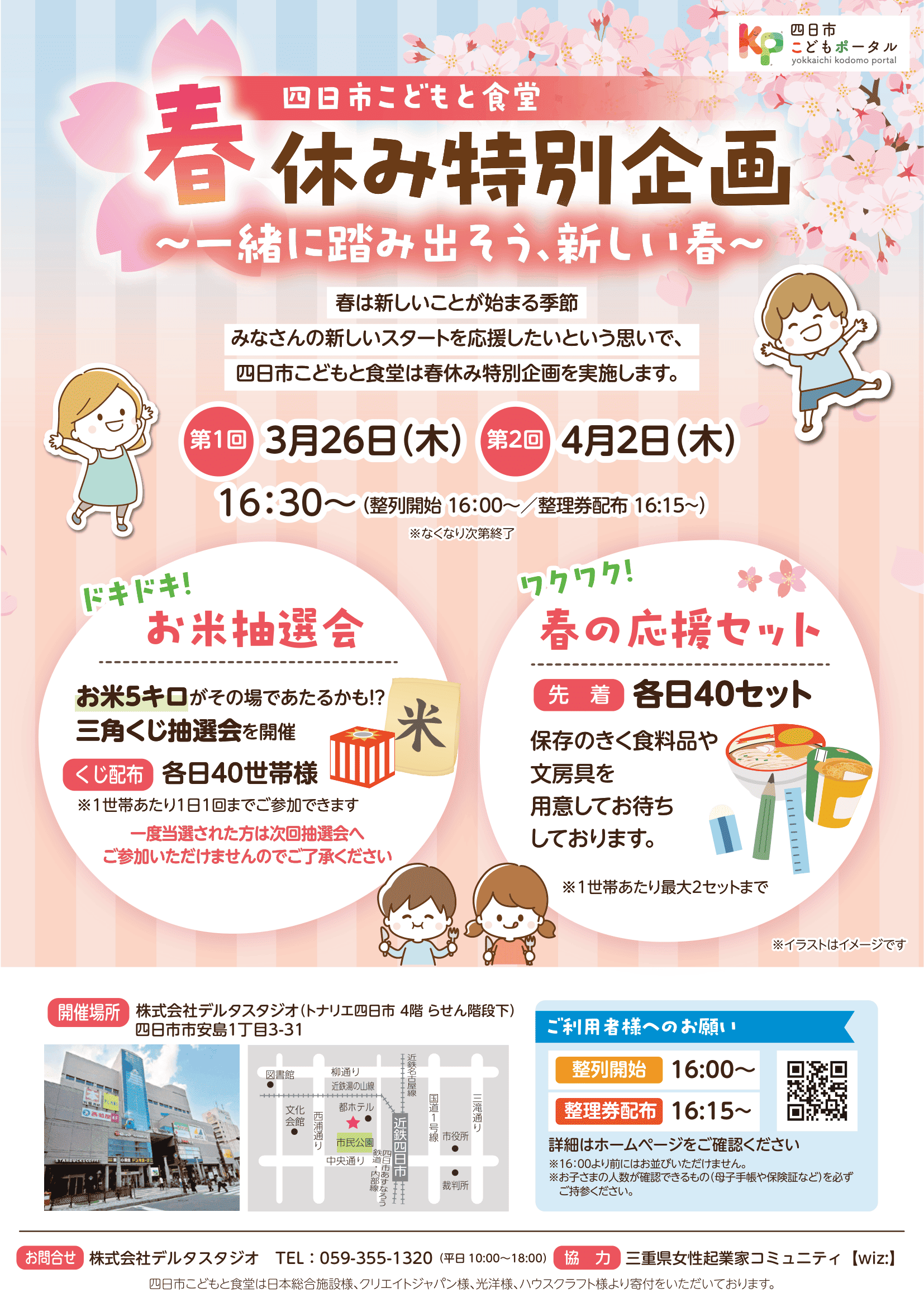 ◆第2回 4月2日(木)16:30~(整列開始16:00~/整理券配布16:15~)春休み🌸特別企画 四日市こどもと食堂 パントリー